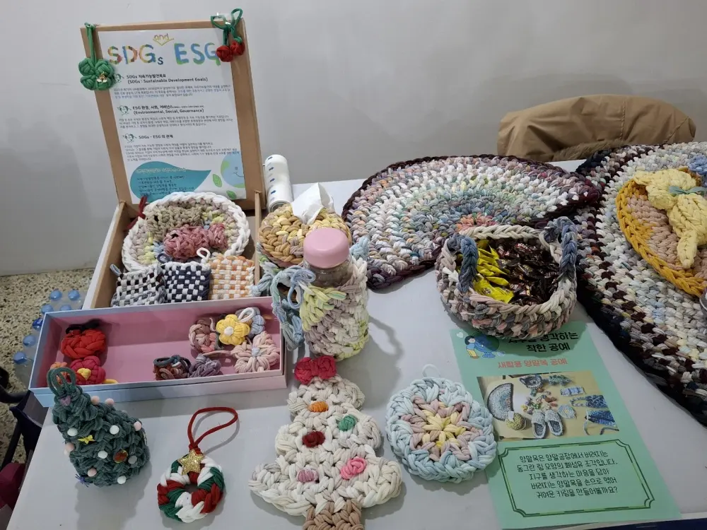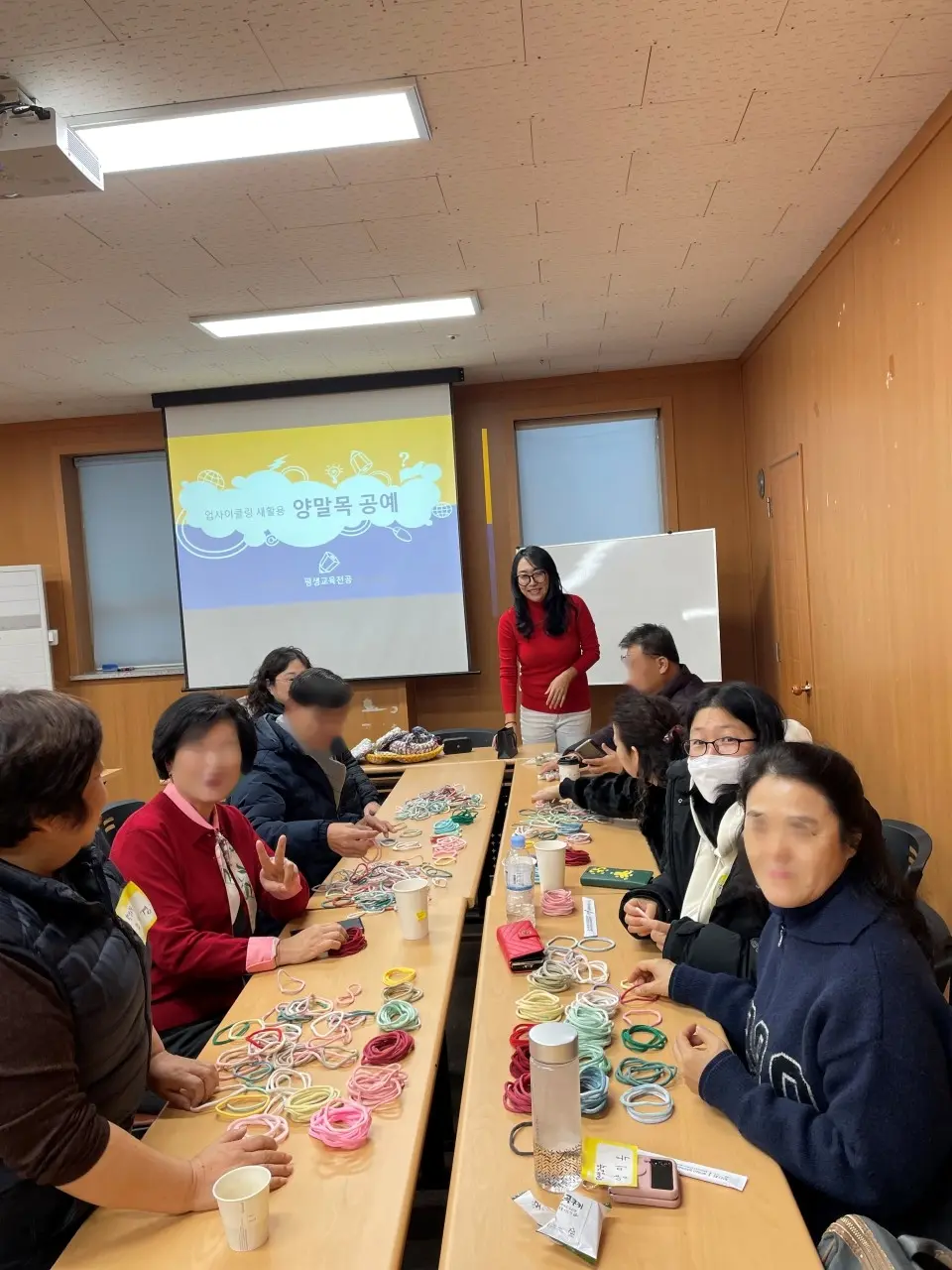 자이언트얀, 마크라메, 라탄, 손뜨개, 수세미실 재료를 활용한 수업을 합니다.