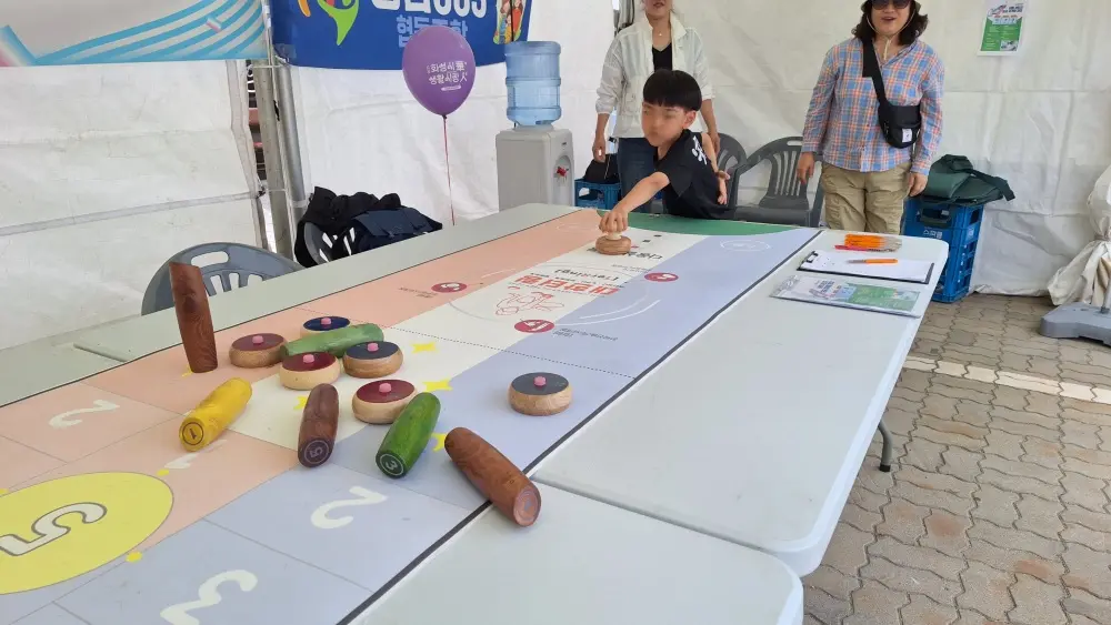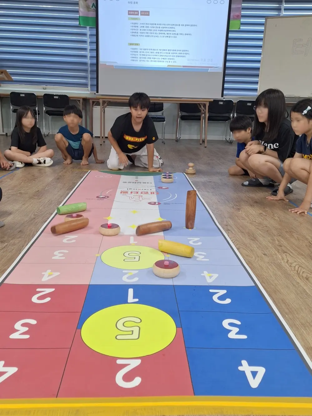 비석치기, 볼링, 컬링을 접목시켜 만든 놀이형 스포츠로 실내에서 재미있게 진행할 수 있습니다.